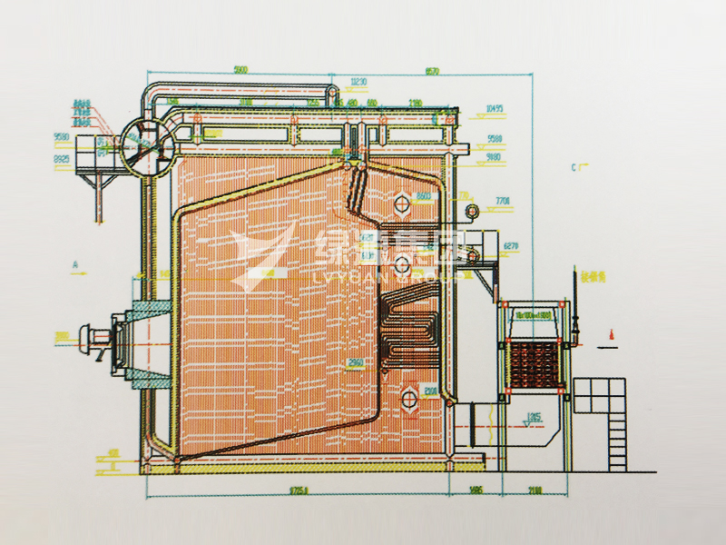 The steam type fuel oil (gas) boiler adopts the Angle tube structure, the furnace chamber is the membrane type water cooling wall completely closed structure, the convection channel upper part is the serpentine tube superheater, the lower part is the flag heating surface, the boiler flue gas outlet external condenser.