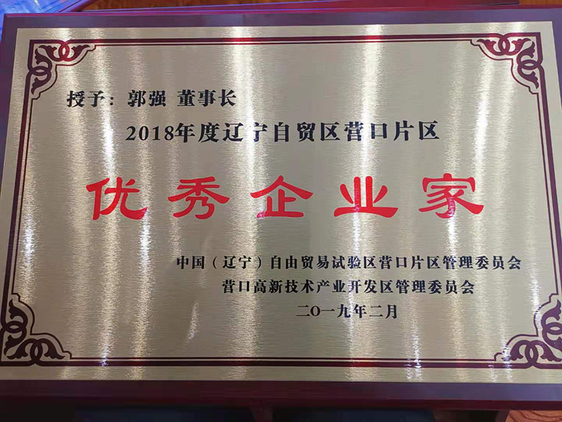 8.2019年2月我公司郭強(qiáng)董事長(zhǎng)被評(píng)為2018年度遼寧自貿(mào)區(qū)營(yíng)口片區(qū)“優(yōu)秀企業(yè)家”稱號(hào)。