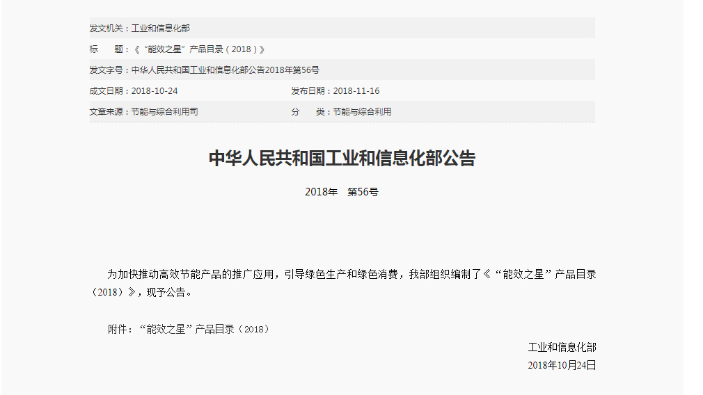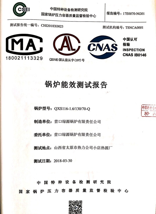 11、2018年10月我公司QXS116-1.6/130/70-Q大型燃?xì)鉄崴仩t被中國(guó)工業(yè)和信息化部評(píng)為《“能效之星”產(chǎn)品目錄(2018)》產(chǎn)品。產(chǎn)品優(yōu)于國(guó)家能效一級(jí)。(見中華人民共和國(guó)工業(yè)和信息化部公告2018年第56號(hào)文件)